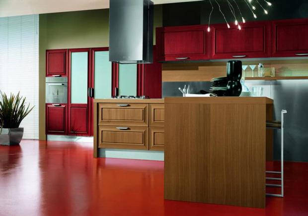 Kırmızı mutfak dolapları sade çizgisi ve alışılmadık tonlaması ile kahverengi mutfak dolapları muhteşem bir uyum içinde. Modern tasarımlar içerisinde son zamanlarda en çok beğendiğimiz mutfak modelleri arasında yer alıyor bu mutfak tasarımı farklı renklerin başarılı bir şekilde bir araya gelmesine tanıklık ediyoruz. Her detayında modern çizgilerin hakim olduğu mutfak modeli sıra dışı bir kırmızı ile yazımıza imzasını atıyor. Bir çok kişinin hayallerini süsleyen bir mutfak modeli bu.