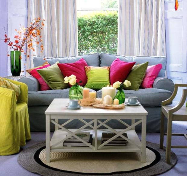 Mavi ve gri arasında ki bir kanepe üzerinde rengarenk yastıklar bize bir yaz havası sunuyor. Bu salon dekorasyonu beklenen yazı baharı görmeden karşılamış bile. Herkesin evinde uygulayabileceği özelliklere sahip bir salon dekorasyonu bu. Abartıdan uzak tarzı ile dikkatleri üzerinde çeken bir salon dekorasyonu sarı koltuk kendini ben buradayım dercesine belli ediyor. Orta sehpa ise biraz eski havası ile ortamı bütünlemeye yetiyor. Evde Son Trend farklı özellikleri ile dikkat çeken salon dekorasyonları ile sizlerleydi.