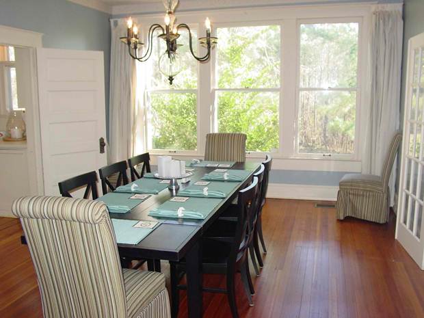 Klasik tarzdaki bu ilk örneğimizde koyu renk ahşap yemek masası ve sandalye minderlerinde daha ayrıntılı ve kompozisyonlar görüyoruz Sandalyeler koltuğu andıran geniş modellerden oluşuyor. Evinizin değişen atmosferi ile sizi natürelliğin hissedildiği bir ortam da sevdikleriniz ile en özel yemeklerinizi keyifle yiyebilirsiniz. Bu ikinci yemek odasında dekorasyon olarak kullanılan Ceviz masa kullanıldıkça değer kazanacak ve yıllar geçtikçe eskimeyecek türden. Klasik bir tarzda bu mobilyalara yakışan cevizden yemek masaları, sağlamlığı ile bilinir ve oldukça uzun ömürlüdür. Geleneksel ama modern görünümü ile evinizin havasını değiştirecek türden bir model.